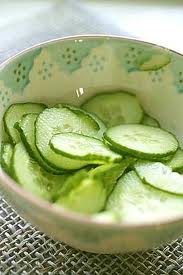 Slik gjør du: Begynn med agurksalaten. Finn fem en stor skål og fyll opp med kaldt vann. Bland inn et par teskjeer sukker og 3- 4 ss eddik og rør til sukkeret er oppløst. Smak etter behov, men den skal være syrlig. Skiv opp agurken med ostehøvel og legg i vannet og sett den i kjøleskapet.