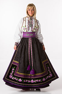 Men det er et flott plagg (langt i fra alle), en skikkelig festdrakt som er veldig praktisk å ha hengende i skapet. Den er svindyr, men kanskje ikke så dyr allikevel når man setter sammen kostnadene av å kjøpe nytt hvert år i stedet. En annen ting er at formene våre forandres med årene. Noen eser ut og andre krymper inn og bunaden må gjøres om likeså og det klages mye over det. Hva er så sexy med dette? Jeg kan ikke fatte det. Bruk det gjerne til folkefest som det er ment for og andre anledninger den kan brukes, men fortell meg gjerne hvorfor du mener det er sexy (hvis du synes det)? Man blir jo omtrent formløs i dette plagget. Alt flyter jo gjerne i hverandre når det gjelder bunader. En annen ting er beltestakken. Den gir litt mere form takket være beltet i livet. Der kommer midjen frem og man fremhever samtidig puppene. Beltestakken viser i hvertfall formen av en kvinne og skiller seg kraftig ut fra vanlig bunad synes jeg. Selv har jeg lagt min elsk på beltestakken fra Øst- Telemark i fargen lilla med sort skjørt og hvit vest som du ser bilde av under her: